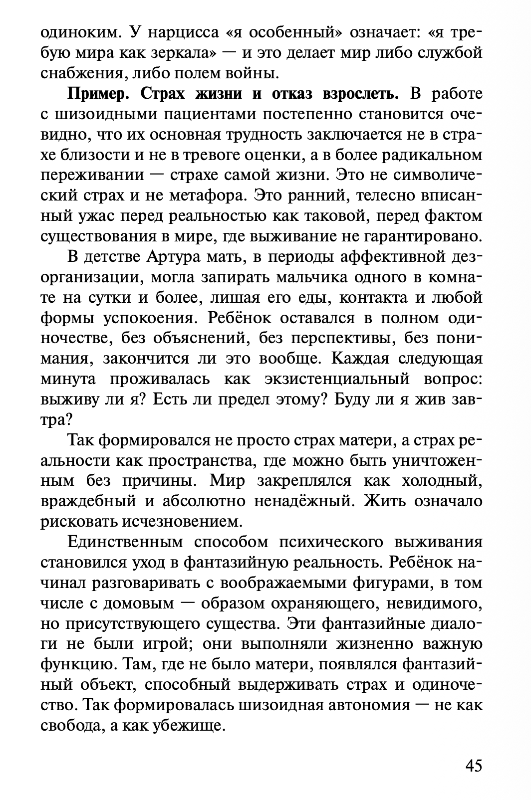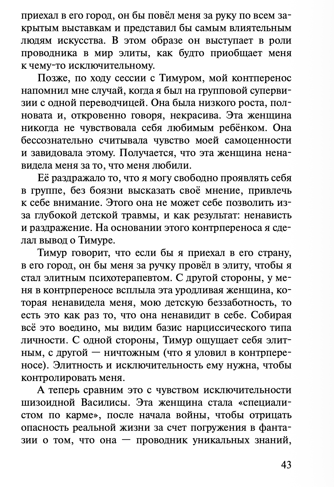 В книге представлено более сорока клинических случаев. Все они реконструированы. Это не дословные истории конкретных людей, а клинические композиции, созданные на основе многолетней практики и объединяющие типичные динамики, переносные и контрпереносные процессы, характерологические структуры.